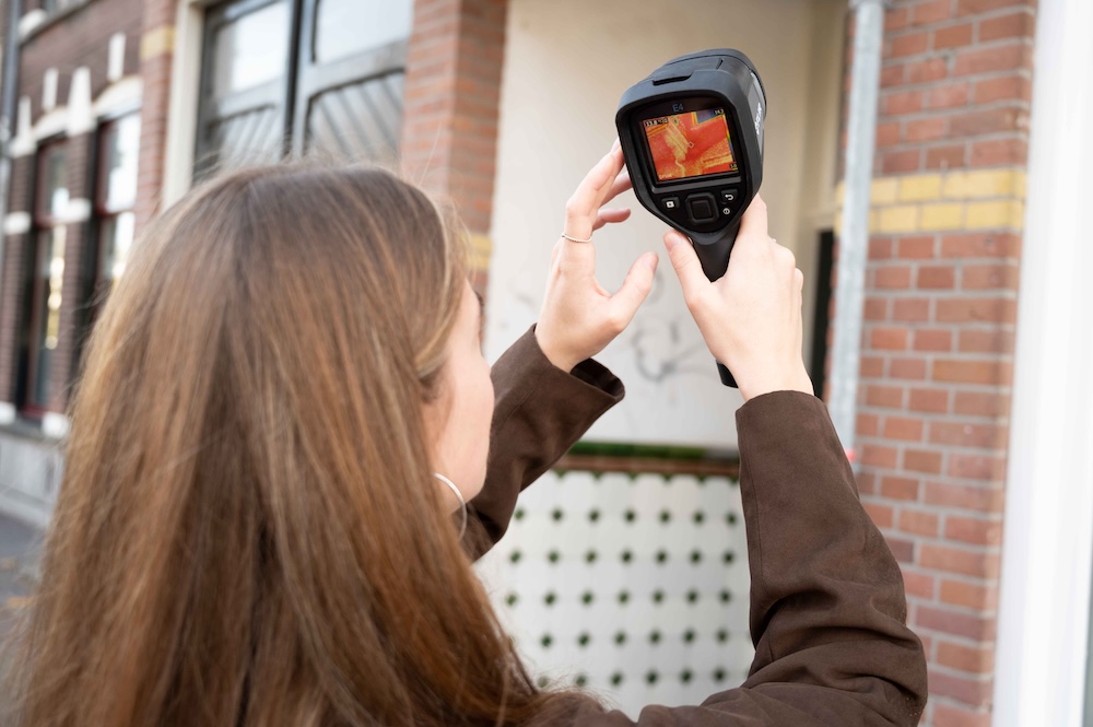 Een warmtewandeling is een activiteit waarbij je samen met je buren op pad gaat om met een warmtebeeldcamera om foto’s van woningen te maken. Deze infraroodcamera laat zien waar warmte uit een huis ontsnapt, bijvoorbeeld via ramen, daken of muren.