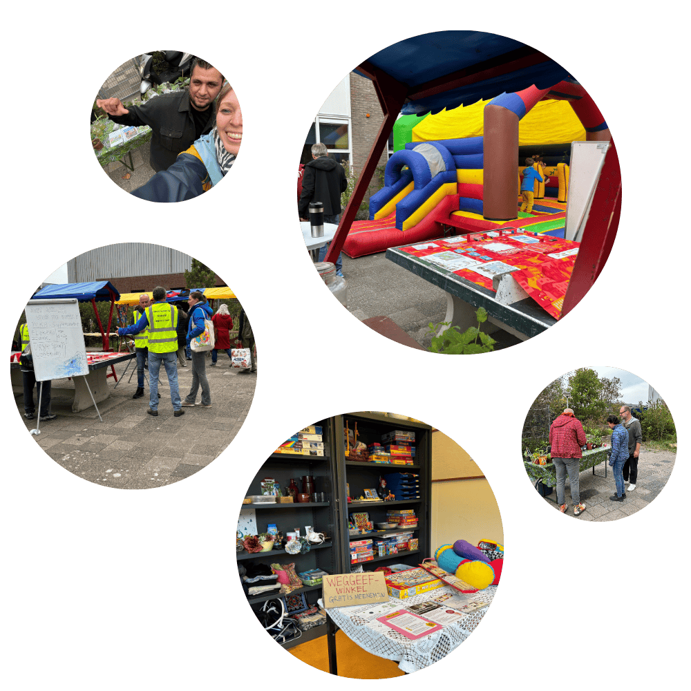 Ook aan de Westzanerdijk werd een gezellige ‘Buurten bij’-dag georganiseerd. Bezoekers konden kleding ruilen op de markt, hun kapotte kleding laten herstellen door Leny de poppendokter, en ideeën voor de buurt delen via de ideeënbus. Onder het genot van koffie en taart werd volop bijgekletst. Tot slot was er ook een inzamelpunt voor kledingdonaties.