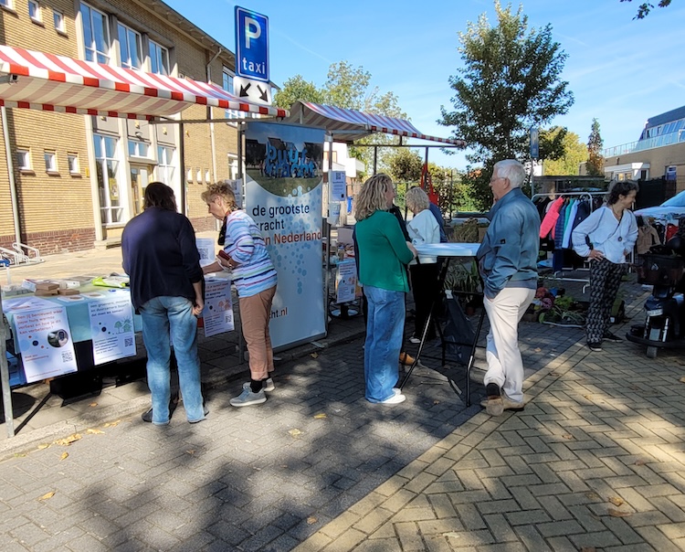 Om buren uit te nodigen voor de buurtmarkt op Burendag en extra aandacht te vragen voor de AED, heeft het buurtteam flyers rondgebracht. Zo nodigden ze de buurt persoonlijk uit en vroegen meteen of ze een donatie wilden doen voor de buurt-AED.