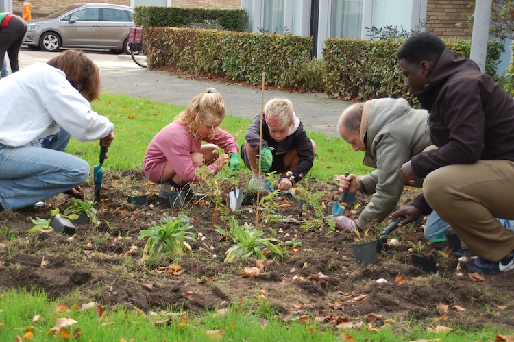 In het weekend 18 en 19 oktober staken maar liefst 50 buren hun scheppen in de grond om bloembollen en winterharde, inheemse planten te poten aan de Minervalaan. Het doel: een fleurigere wijk én meteen een ‘B&B’ voor vlinders, wilde bijen en andere insecten. Kartrekker Kirsten Bruijel: “We kijken terug op een geslaagd weekend. Het was heel gezellig om samen aan de slag te gaan om de buurt op te vrolijken. Daarbij zijn de ruim zestig soorten inheemse planten en voorjaarsbloeiers enorm belangrijk voor een diverse en robuuste natuur. We kijken er naar uit als het straks allemaal zal uitlopen!”
